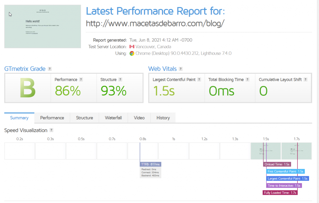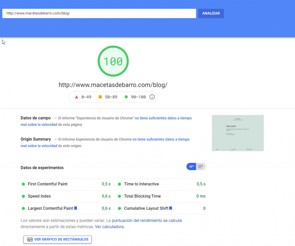 Resultado WordPress optimizado