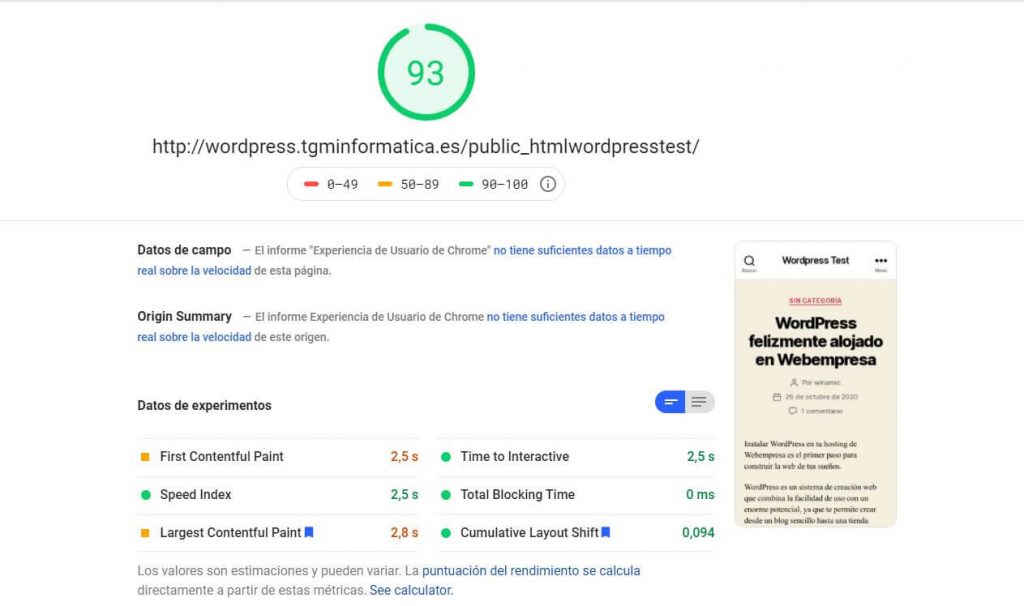 TEST DE RENDIMIENTO AL HOSTING WEBEMPRESA